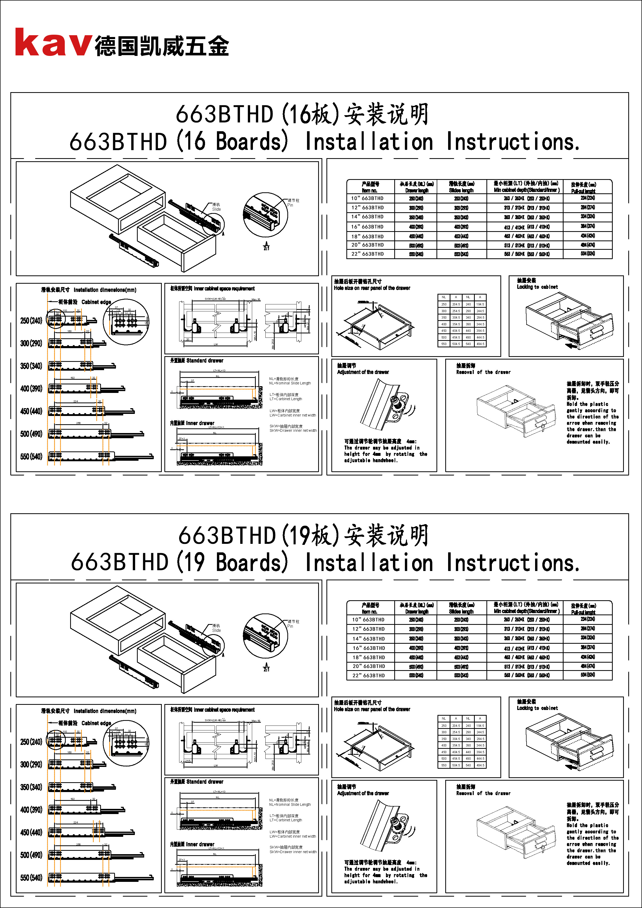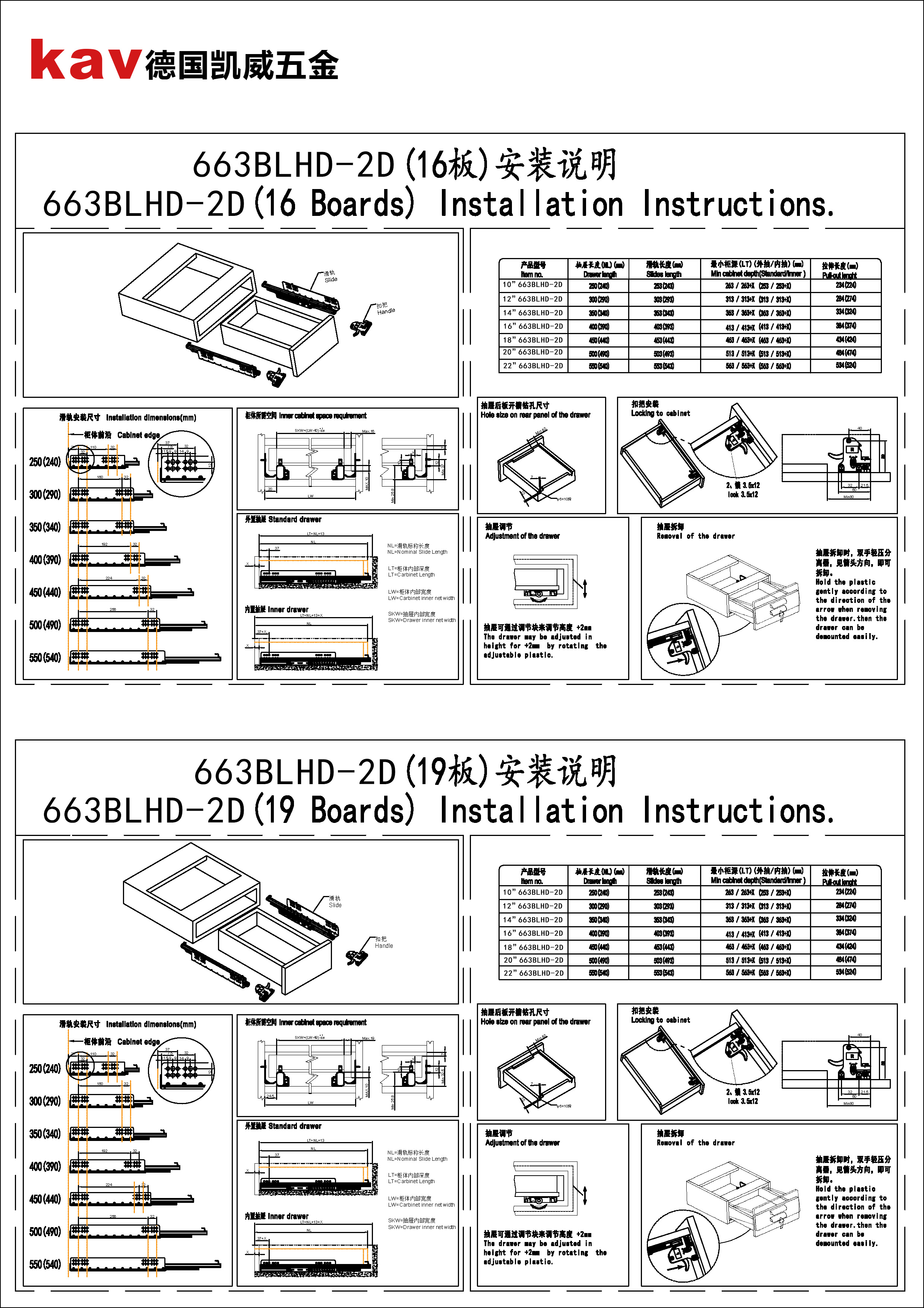 553BHFI-3D Full extension soft close drawer runners and push open undermount dra
